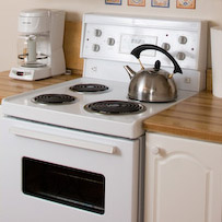 - Pots and pans, kettle, coffee maker, knives and cutting board