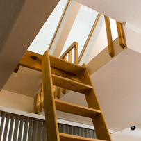 - Loft with two single mattresses, lit by a sky light.